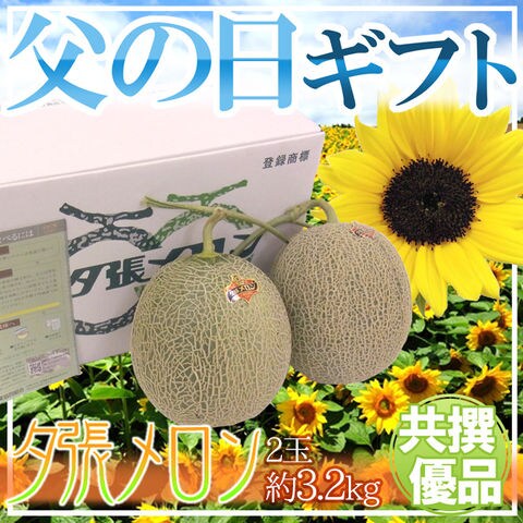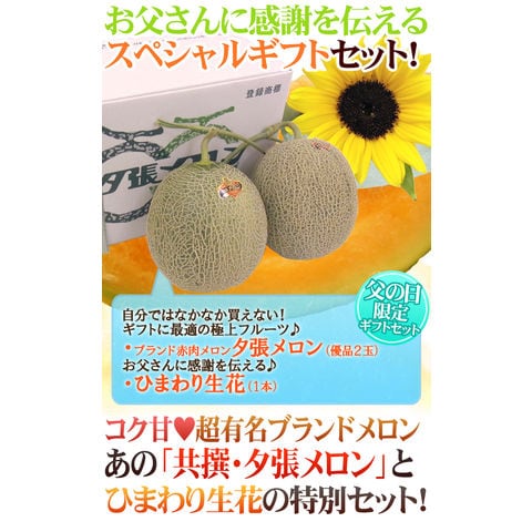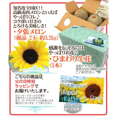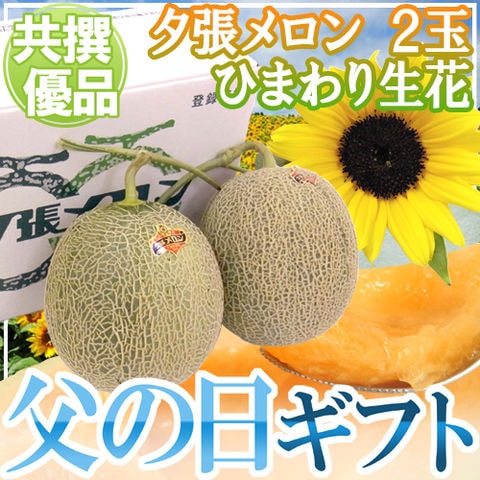 父の日ギフト ”夕張メロン” 共撰優品 2玉 約3.2kg+ひまわり生花1本(冷蔵便)【予約 6月14~21日お届け予定】 送料無料〈*北海道・沖縄:追加送料必要〉