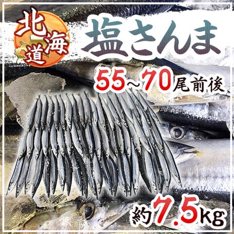 北海道産 ”塩さんま” 55〜70尾前後 約7.5kg サンマ 秋刀魚 送料無料(冷凍便)〈*北海道・沖縄:追加送料必要〉