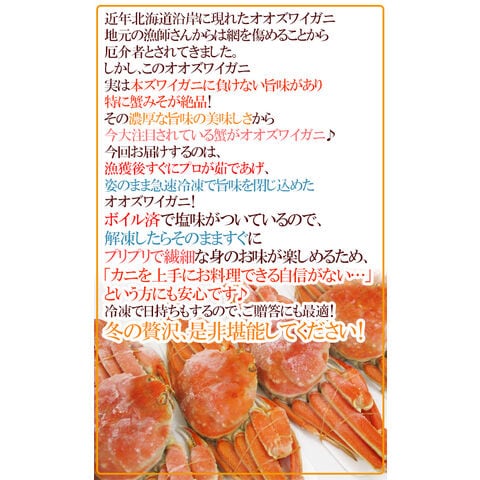 北海道産 冷凍 ”ボイルオオズワイガニ” 5~6杯前後 約3kg 姿 ズワイ蟹 送料無料(冷凍便)〈*北海道・沖縄:追加送料必要〉
