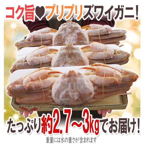 ロシア産 冷凍 ”生ズワイガニ” 3杯 約2700g~3kg 姿 ズワイ蟹 送料無料(冷凍便)〈*北海道・沖縄:追加送料必要〉