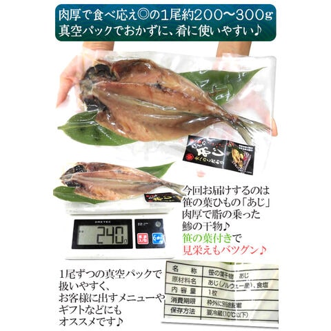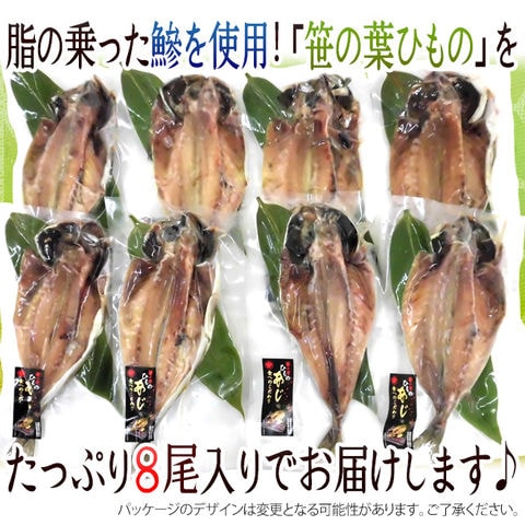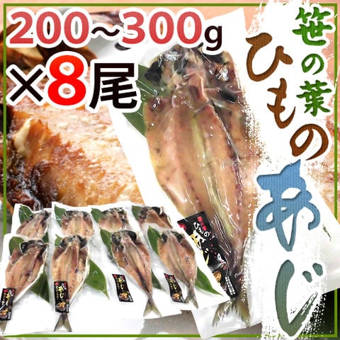 ”笹の葉ひもの あじ” 約200~300g×8尾 鯵の干物 送料無料(冷凍便)〈*北海道・沖縄:追加送料必要〉