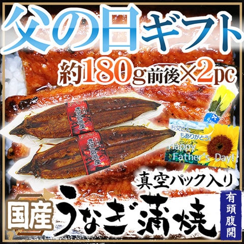 父の日ギフト ”うなぎ蒲焼” 黄色バラ造花付き 約180g×2pc 真空パック入り 国産 (冷凍便)【予約 6月14~21日お届け予定】送料無料〈*北海道・沖縄:追加送料必要〉