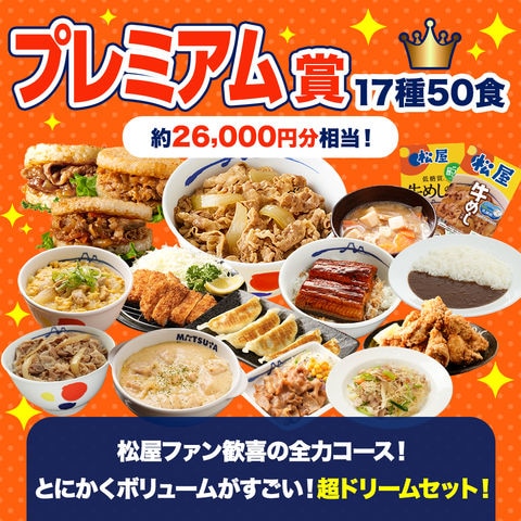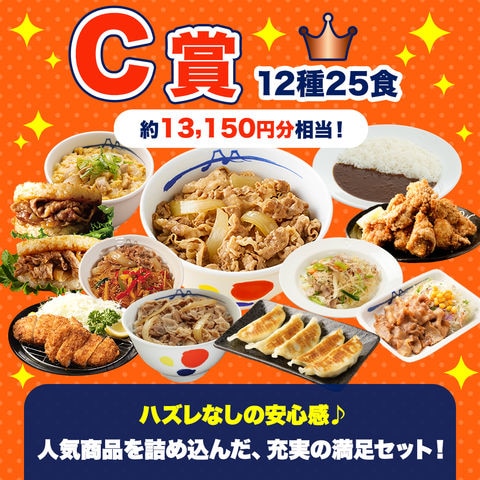 【単品合計価格】 プレミアム賞(17種50食):26,000円相当 A賞(14種35食):18,800円 B賞(15種30食):15,500円 C賞(12種25食):13,150円