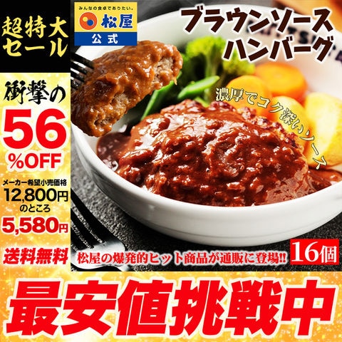 (衝撃の56%OFF!) 松屋 ブラウンハンバーグ 16食 ハンバーグ ブラウンソース マッシュルーム 牛肉 肉 まつや 食品 非常食