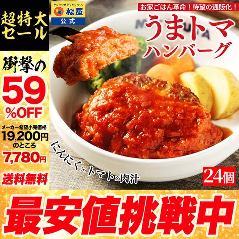【今だけ特別価格!1食325円!】 松屋 公式 うまトマ うまトマハンバーグ 24食 ハンバーグ トマト にんにく トマトソース オリジナルソース 簡単調理 牛肉 肉 食事 おつまみ お取り寄せ レンジ お惣菜 保存食 防災食 仕送り 非常食 ご飯のお供