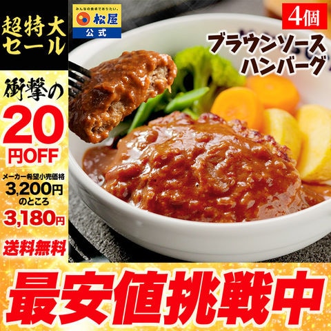 【1食795円!】 松屋 ブラウンハンバーグ 4食 ハンバーグ ブラウンソース マッシュルーム 牛肉 肉 まつや 食品 非常食 セール