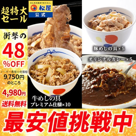 全部盛り20個(プレミアム仕様牛めしの具×10 豚めしの具×5 オリジナルカレー×5) 松屋牛丼 当店のイチオシ 非常食