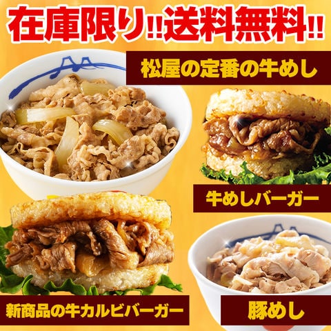 牛めしの具プレミアム仕様×10食 豚めしの具×6食 牛カルビバーガー(1個入り)×6食 牛めしバーガー(1個入り)×6個 |