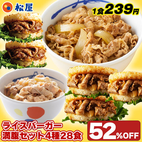 【衝撃の52%OFF!】 松屋 ライスバーガー満腹セット 4種28食入り 冷凍食品 保存食 非常食 米 お米
