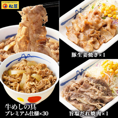 【メーカー希望小売価格16,400円→7,280円】新牛めしの具(プレミアム仕様)30食セット 旨塩だれ牛焼肉と豚生姜焼きのおまけつき【牛丼の具】 松屋牛丼 非常食