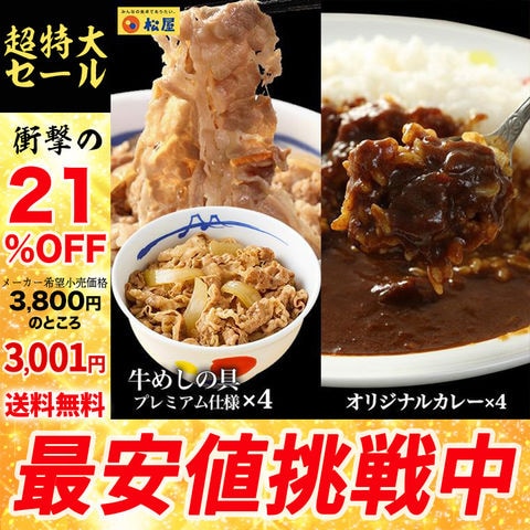 【衝撃の21%OFF!】 松屋 プレミアムカレギュウセット8個(プレミアム仕様牛めしの具×4 オリジナルカレー×4) 非常食