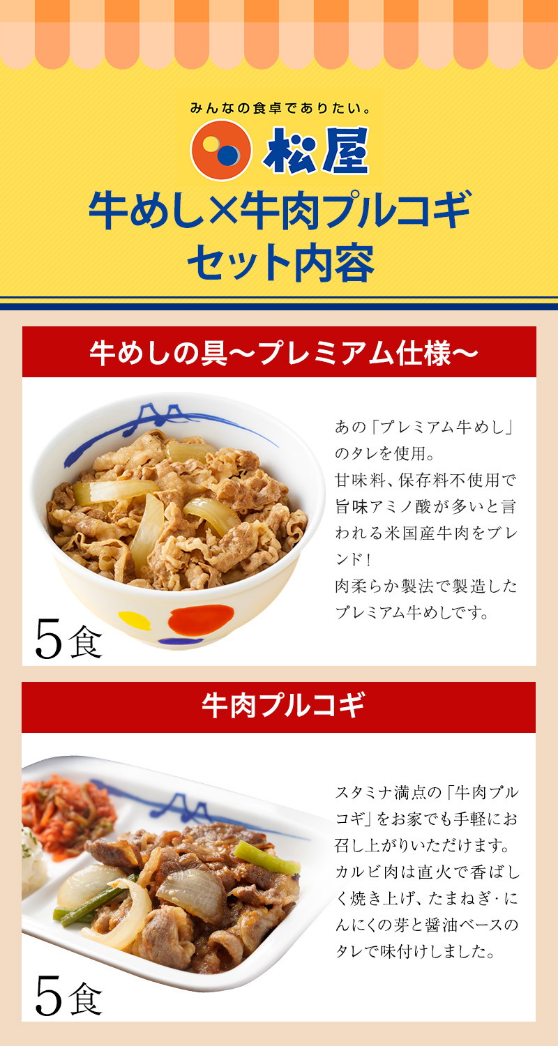 【衝撃の38%OFF】 松屋 公式 牛めしの具 5食 と 牛肉プルコギ 5食 セット プルコギ 直火焼き カルビ肉 まつや 牛丼 食品 グル メ 冷凍 冷凍食品 非常食