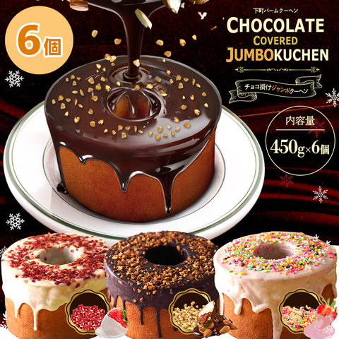 【メーカー希望小売価格13,000円⇒6,199円】超ド級1個450g チョコがけスーパージャンボクーヘン6個 チョコアーモンド味・ホワイトストロベリー味・ストロベリースプリンクル味各2個(450g×6)