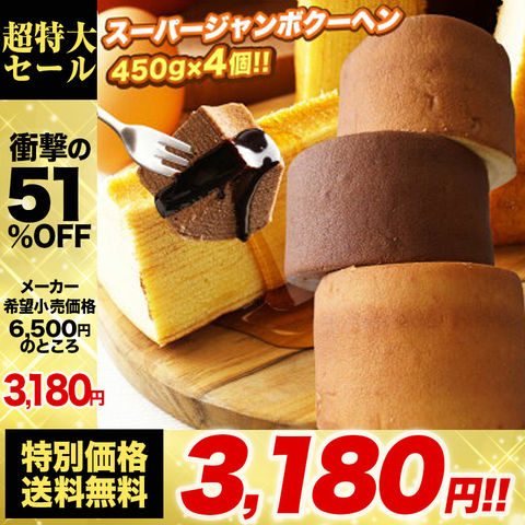 【メーカー希望小売価格6,500円→3,180円】 【1個450gの超ド級サイズ】 スーパージャンボクーヘン4個 (450g×4) バニラ・キャラメル・メープル・紅茶 おすすめ C