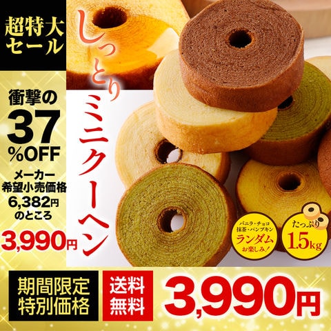 【メーカー希望小売価格6,382円⇒3,990円】 訳ありミニクーヘン1.5kg ★工場長のおまかせ ※4種類入るとは限りません。 送料無料 おすすめ I