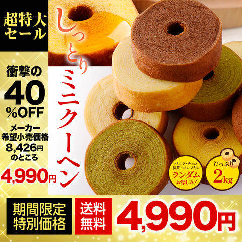 【メーカー希望小売価格8,426円⇒4,990円】 訳ありミニクーヘン2kg ★工場長のおまかせ ※4種類入るとは限りません。 送料無料 おすすめ I