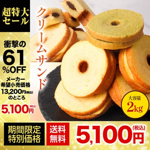【メーカー希望小売価格13,200円⇒5,100円】 クリームサンド 2kg 送料無料 バームクーヘン バウムクーヘン おやつ かわいい スイーツ お菓子 お取り寄せ 非常食