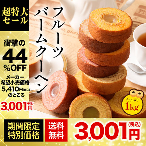 【メーカー希望小売価格5,410円→3,001円!】 フルーツ餡がぎっしり! フルーツバーム1kg もも いちご みかん バナナ フルーツ フルーツクーヘン バウムクーヘン 洋菓子 和菓子 M