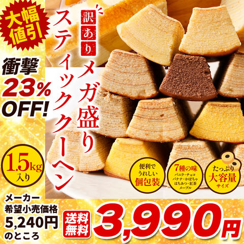 【メーカー希望小売価格5,240円→3,990円!】 訳あり スティッククーヘン1.5kg ★ 送料無料 バームクーヘン バウムクーヘン おやつ スイーツ お菓子 かわいい 詰め合わせ お取り寄せ ギフト プレゼント 在庫処分