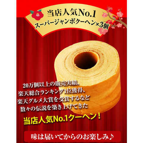 | 内容量 | スーパージャンボクーヘン×3、アップルクーヘン×1、下町バームクーヘン×2、ミニクーヘン×2、スティッククーヘン×2、フルーツあんこバームクーヘン×2、あんこバームクーヘン×2、リキュールバームクーヘン×1 |