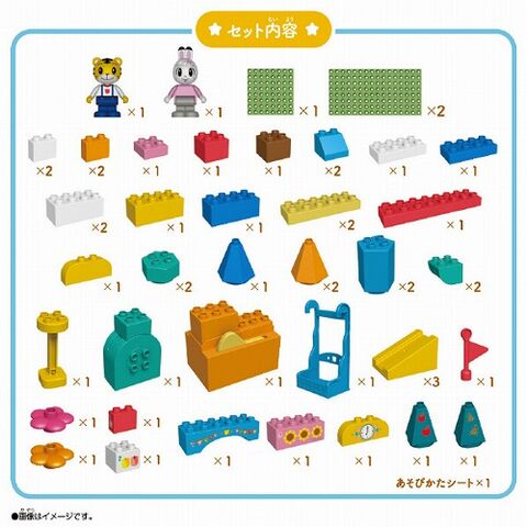 ・セット内容:ドール…2(しまじろう・みみりん)、アクションブロック…2、ブロック…46、あそびかたシート…1