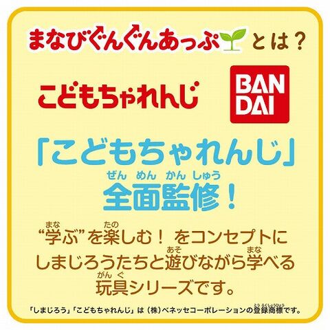『まなびぐんぐんあっぷ』とは、「こどもちゃれんじ」全面監修のもと、 “学ぶ”を楽しむ! をコンセプトにしまじろうたちと遊びながら学べる玩具シリーズです。
