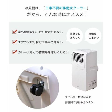 ・付属品:リモコン×1、排熱ダクト×1(0.3~1.2m)、 ダクトエンドA/B×各1、窓パネルA/B×各1、レール用アタッチメント×2、四角ボルト×1、蝶ナット×1、ネジ×4、キャップ×1、ドレンホース×1