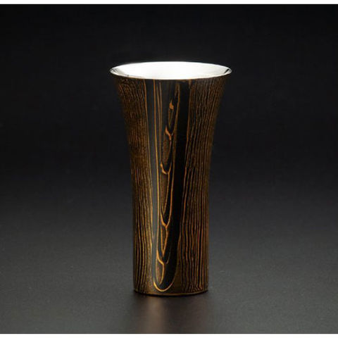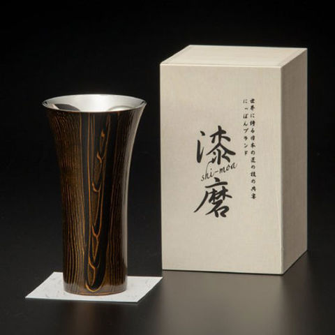 カップ本体は18-8ステンレスを用い、新潟県燕三条で成形、研磨しています。内側上部は鏡面仕上げ、下部はらせん状の磨き筋をつけることで、ビールを注いだ瞬間に勢いよくクリーミーな泡が生まれます。二重構造になっているため水滴が付きにくく 、保冷性にも優れています。ステンレス素材の機能性を生かしつつ、外側を漆で仕上げることで、しっとりとした質感がプラスされ、口あたりもやわらかです。