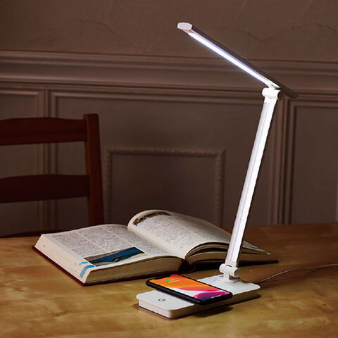 Qi対応のスマートフォンを置くだけで充電が出来るワイヤレス充電機能付の卓上ライトです。ライトの明るさは3段階で調節可能。