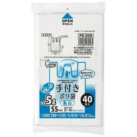 ジャパックス 手付ポリ袋SSサイズ 約5L、12号 40枚入 乳白 PR26W