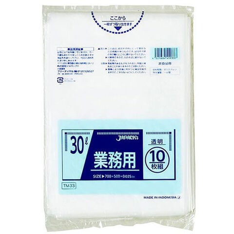 ジャパックス メタロセン配合ポリ袋 30L透明10枚 TM33