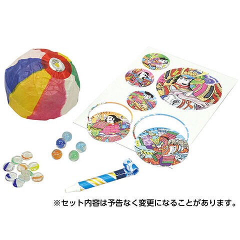 セット内容:紙風船×1、メンコ×6、ビー玉×5、おはじき×10、吹き戻し×1