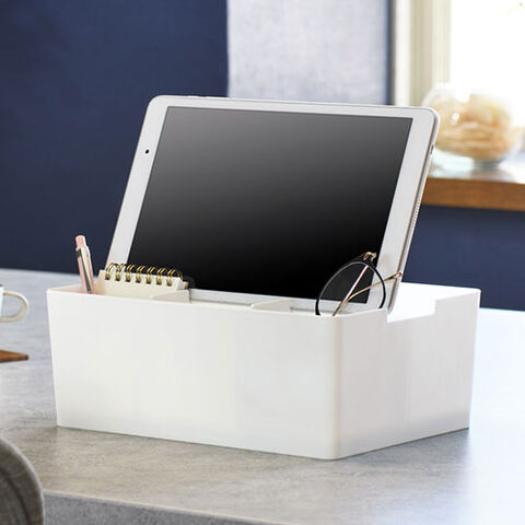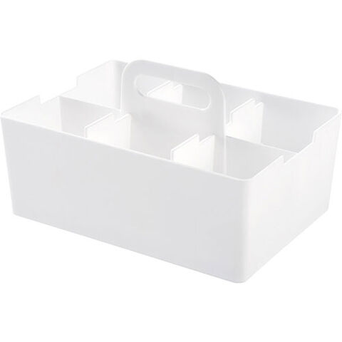 小物をまとめて収納し、持ち運べるデスクオーガナイザー。タブレットやスマートフォンを立てかけられるので、テレワークなどに便利です。また、コスメボックスとして使用する際は鏡が立てかけられて便利です。仕切板4枚付。