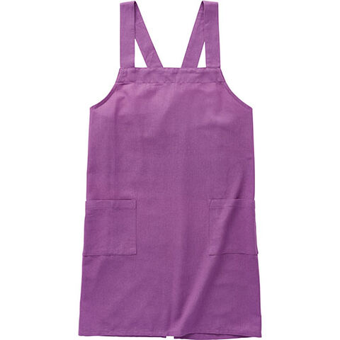 ・着脱のしやすいバッククロスタイプエプロン。ササっと被ることができるので忙しい方にもおススメのデザイン。ゆったりとした着心地になっています。