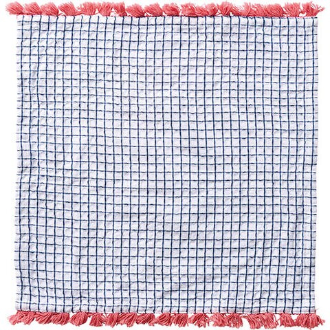 ・白地に格子柄を効かせ、アクセントカラーのフリンジをプラスしたディッシュクロス。