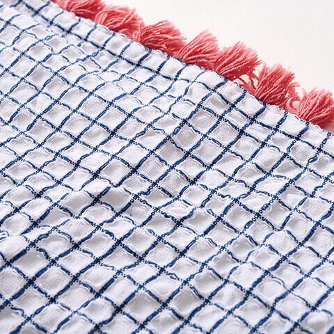 存在感のあるフリンジがアクセントのワッフルクロス。