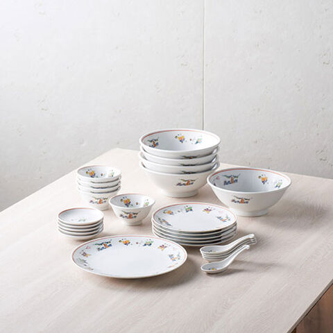 かわいい唐子柄の本格的な中華のホームセット。家庭用食洗機使用可能。