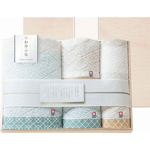 和布小紋 Modern タオルセット(国産木箱入) フェイスタオル×2、バスタオル・ウォッシュタオル×各1 B1134574