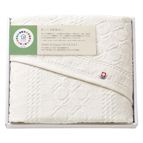 新バイオ精練加工は従来の精練加工より53.6%のCO2排出削減を実現! ヒトと地球にやさしいタオルです。