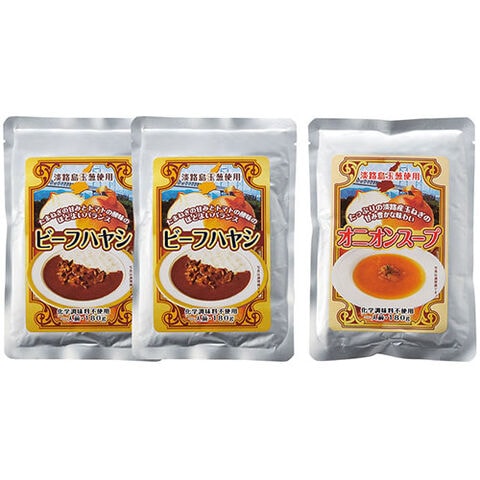 セット内容:ビーフハヤシ(180g)×2、オニオンスープ(180g)×1