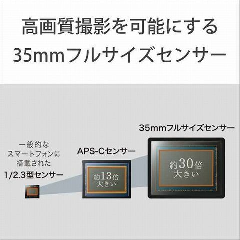 ■一般的なスマートフォンで採用されている1/2.3型センサーの約30倍の大きさとなる、35mmフルサイズセンサーを搭載