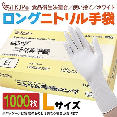 TKJP ニトリル手袋 食品衛生法適合・使い捨て・ロング手袋 ホワイト Lサイズ 1000枚(1ケース) glove042-1000-l