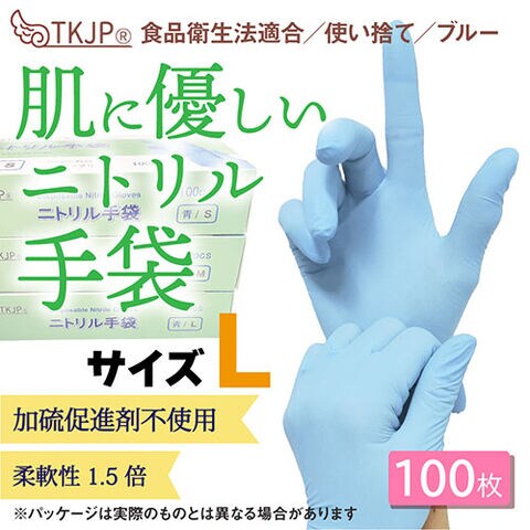 TKJP ニトリル手袋 肌に優しい・加硫促進剤不使用・食品衛生法適合 ブルー Lサイズ 100枚(1箱) glove004-100-l