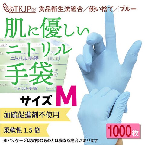 TKJP ニトリル手袋 肌に優しい・加硫促進剤不使用・食品衛生法適合 ブルー Mサイズ 1000枚(1ケース) glove004-1000-m