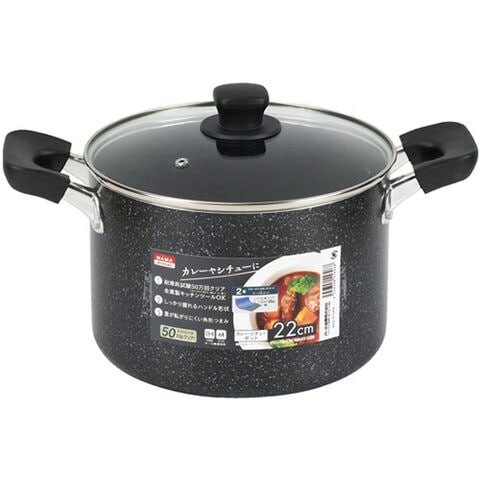 ママディナーアルファ マーブルダイヤモンド IH対応ガラス蓋付カレー・シチューポット鍋22cm