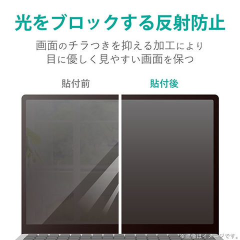 ■反射率1.6%と優れた低反射率で外光の反射、映り込みを防ぎ、目に優しく見やすい画面を実現した、反射防止液晶保護フィルムです。