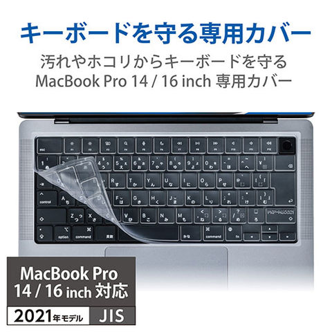 キーボードの汚れを防ぎ清潔に使う、MacBook Pro 14インチ、16インチ(2021)専用サイズのキーボード防塵カバー。