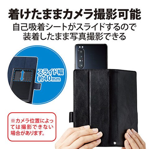 ■自己吸着シートが上下にスライドできるのでカバーを装着したまま写真撮影が可能です。