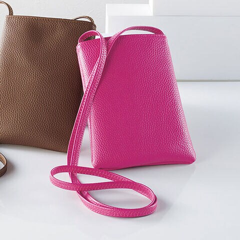 必要最低限のものが収納できるスマホポシェット。縦16cm、横8cm、厚さ1cm程度までのスマートフォンに対応。ショルダーベルト着脱不可(長さ調節不可)。