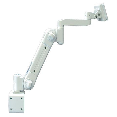 低耐荷重1~4kg、6関節のVESA75/VESA100規格対応の机に挟み込むクランプ式フレキシブルアーム。クランプ式なので、机を加工することなくつけたりはずしたりが容易にできます。独自構造の特殊バネ(米国特許取得)を使った関節により、なめらかな可動でお客様の好きな位置に無段階で静止します。組立マニュアル、組立工具、保証書あり。